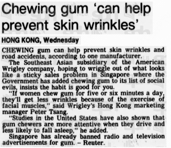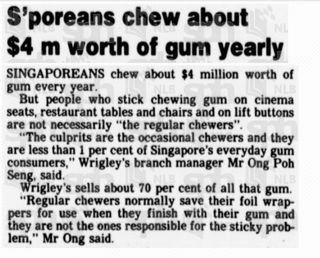 Given that the ban was mostly implemented to protect Singapore’s precious new MRT system (more fun details in the podcast!), public reaction was divided. The Consumers Association of Singapore (CASE)3 leaned in favour of the ban, claiming that majority of Singaporeans were actually non-consumers of chewing gum. Other supporters of the ban gave similar reasons.