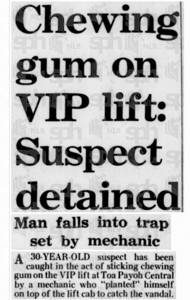 Chewing gum was not just an annoying nuisance - there were full-fledged vandals going around Singapore tormenting regular Singaporeans with jammed lifts and sticky pavements. The cost of cleaning up these public facilities ran up to $150,000 a year1 (~$600,000 in today’s terms) and the frequent mishaps were starting to get on everyone’s nerves.