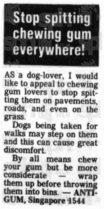 Case backs ban on chewing gum for good of the environment - The Straits Times